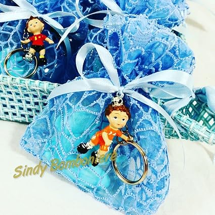 Sindy Bomboniere Sacchetto Per Battesimo Con Portachiavi Bimbo Giocatore Tema Calcio Comunione Bambino Sb